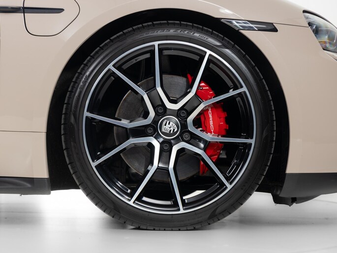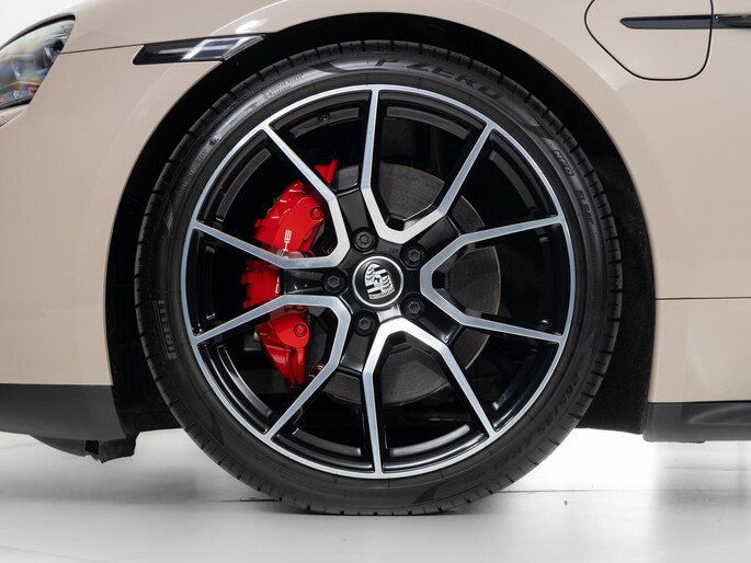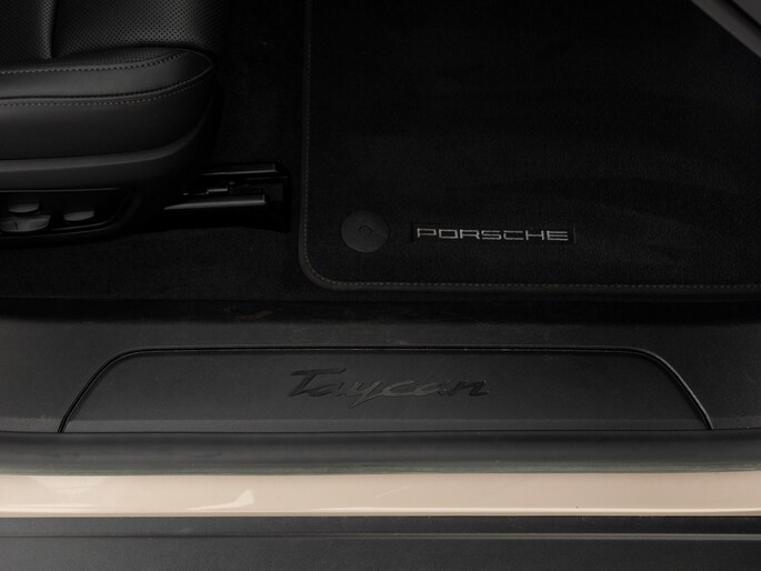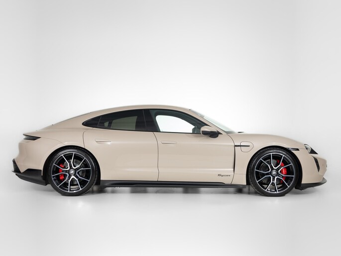 Deze Porsche Taycan in de kleur Koffiebeige metallic heeft slechts 19.995 kilometers gereden. De Porsche onderscheidt zich onder andere door unieke opties, zoals; 10,9 inch bijrijdersdisplay, Adaptieve sportstoelen voor (18-voudig verstelbaar, elektrisch) met geheugenpakket, Performance Accu Plus en het SportDesign Pakket hoogglans zwart. Uiteraard is dit exemplaar nog verder te verfraaien door hoogwaardige accessoires van Porsche Tequipement.