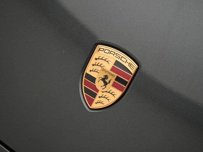 - PORSCHE logo zwart mat en modelaanduiding zwart hoogglans gespoten