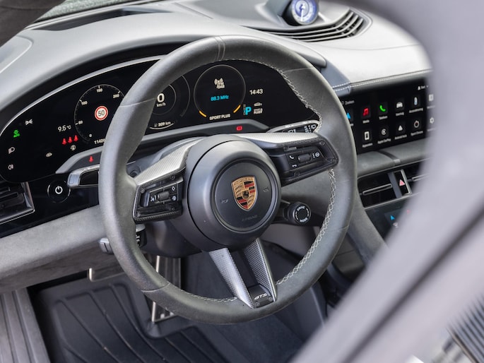 Beautiful Porsche Taycan finished in the stylish ‘Chalk Grey’. A stunning configuration with the most important options such as: four-wheel steering, Sport-chrono-package, head-up display, panoramic glass roof and Bose sound system.