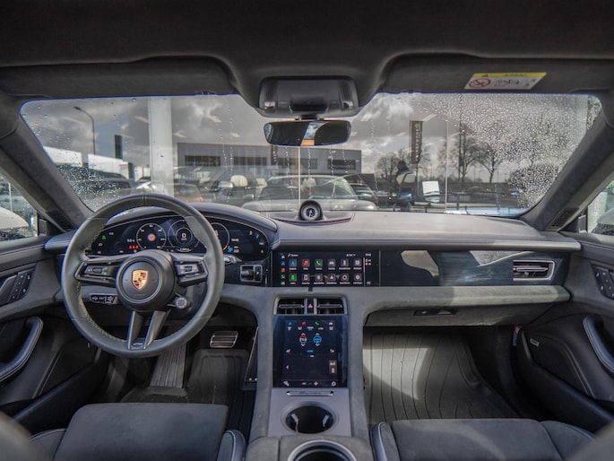 Mooie Porsche Taycan uitgevoerd in het stijlvolle ‘Krijtgrijs’. Een schitterende configuratie met de belangrijkste opties zoals: 4-wiel sturing, Sport-chrono-pakket, head-up display, panorama glazen dak en Bose sound system.