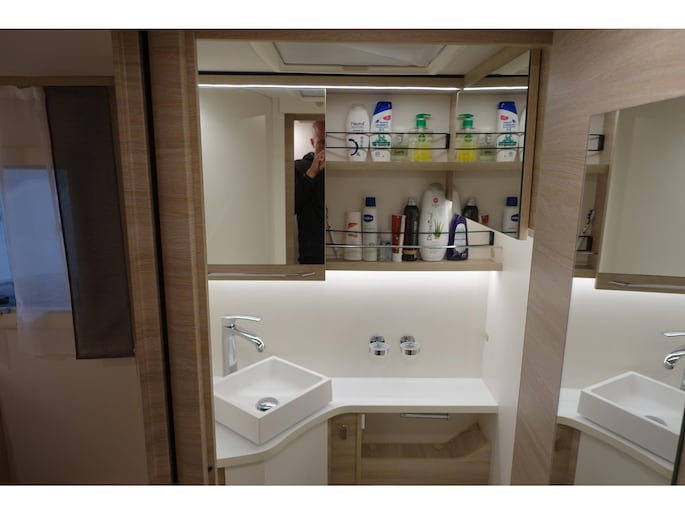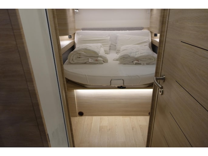 De camper biedt veel geraffineerde details die het dagelijkse wooncomfort nog net even verbeteren. Zo is het queensbed elektronisch in hoogte verstelbaar om nog meer laadruimte in de garage te creëren.