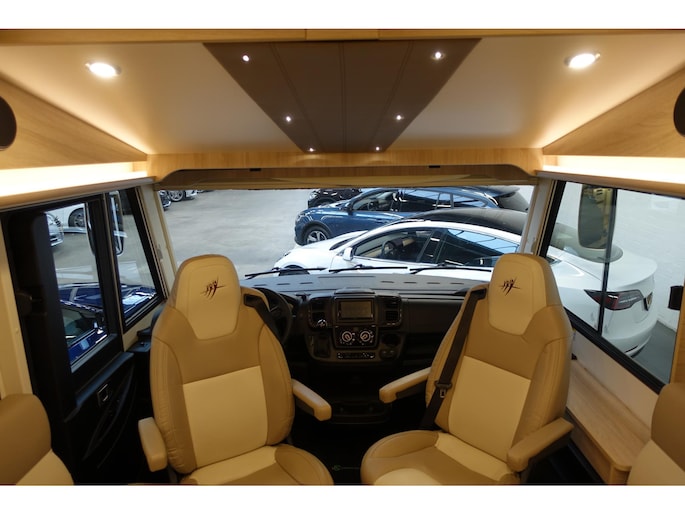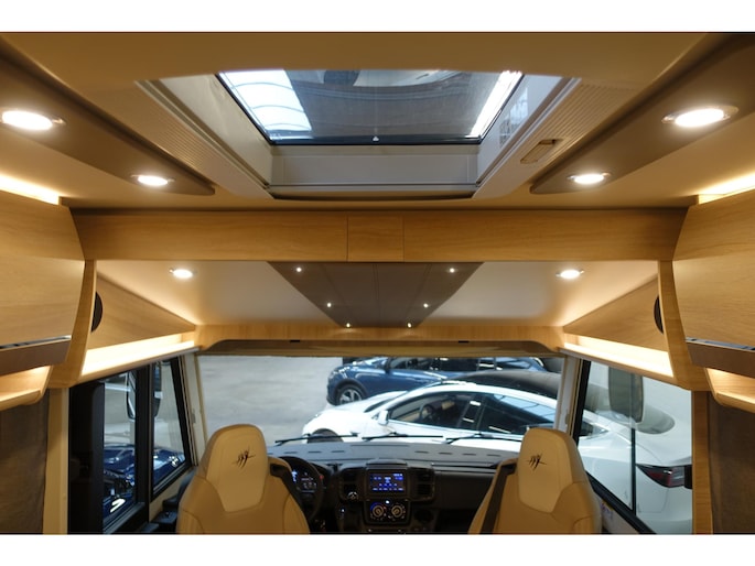 - Gezellige face to face zit met panorama dakluik en draaibare pilotenstoelen, dubbele armleuningen in hoogte verstelbaar