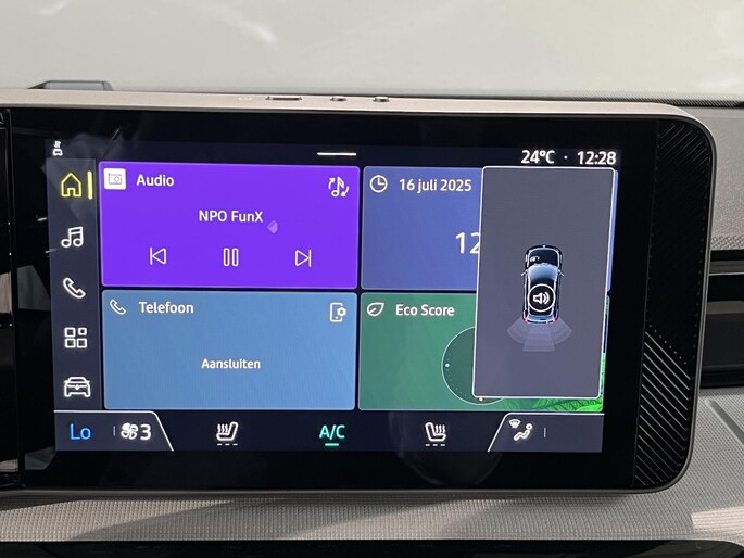 Het digitale dashboard is niet alleen enorm fraai en handig, maar draagt actief bij aan een veilige en slimme rit. Een smartphone met internetverbinding legt eenvoudig overal contact met de auto. U kunt functies activeren en de conditie van de auto monitoren. De bediening van het audiosysteem gebeurt met knoppen op het stuur. Een extra gevoel van veiligheid: de kruisend verkeer detectie anticipeert en waarschuwt als aanrijding met een tegenligger dreigt. Het spreekt voor zich dat een auto als deze ook van automatische airconditioning is voorzien. Wat u ook in deze auto kunt vinden zijn parkeersensoren achter, regensensor, cruise control, keyless entry en verstelbaar stuur.