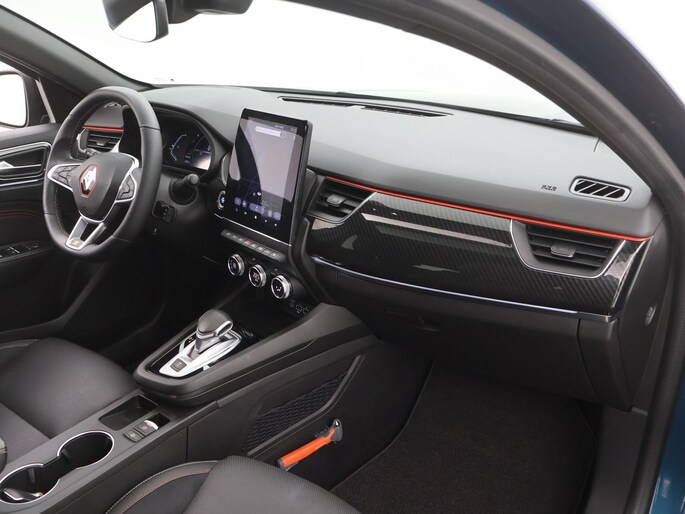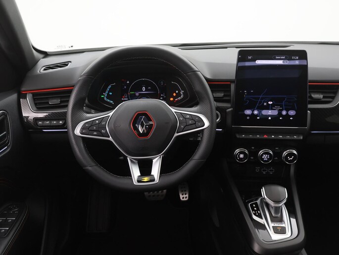 Met zijn dynamische eigenschappen belooft deze Renault Arkana u een heleboel rijplezier. Hij is ontwikkeld op een geavanceerd onderstel en biedt altijd een veilig weggedrag. Deze hybride auto heeft een combinatie van een verbrandingsmotor en een elektromotor. Behaaglijk onderweg zijn? Als bestuurder geniet u van de verwarmbare voorstoelen. Net als uw bijrijder! Het panoramadak zorgt voor maximale lichtinval en kan worden geopend voor extra ventilatie. Als de 'r' in de maand zit, komt zo'n verwarmd stuurwiel als geroepen! Bij de rijke uitrusting horen ook 18 inch lichtmetalen velgen, LED koplampen, extra getint glas, in delen neerklapbare achterbank, LED-achterlichten en verstelbare lendensteunen.