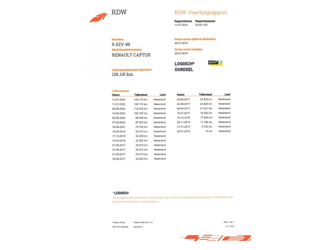 Kilometerstand gecontroleerd