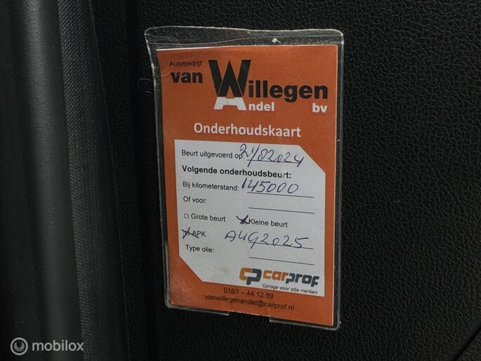 Onderhoudshistorie aanwezig: Ja