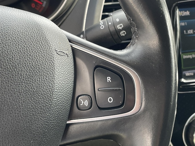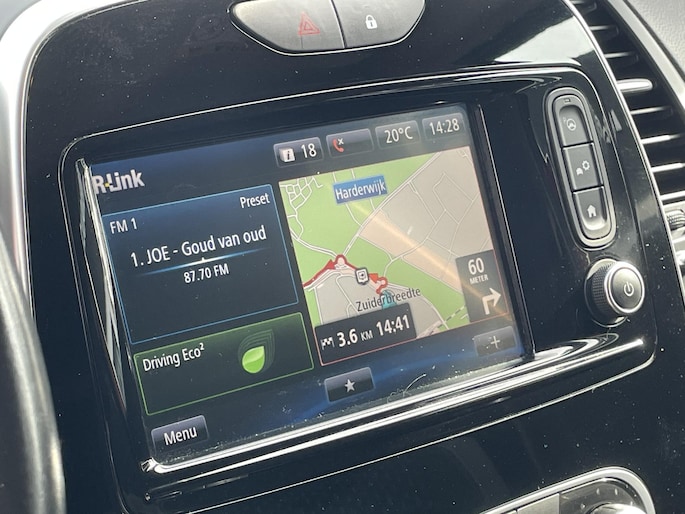 De achteruitrijcamera brengt precies in zicht wat zich achter u bevindt en toont een glashelder beeld op hoge resolutie. Een geluidssignaal waarschuwt hoeveel ruimte u nog heeft. Een goede veiligheidsvoorziening is de spraakbediening en stuurbediening voor belangrijke functies. De auto is natuurlijk voorzien van een full map navigatiesysteem en het audio-installatiesysteem biedt glasheldere geluidskwaliteit dankzij DAB-ontvangst. Electronic climate control verwarmt of koelt het interieur met een druk op de knop. In deze Renault kunt u zich concentreren op het verkeer, terwijl de auto de omgeving voor u in de gaten houdt. Een automatisch inschakelbare verlichting zorgt dat de verlichting aangaat als het donkerder wordt - in tunnels bijvoorbeeld - en de regensensor schakelt de ruitenwissers in als het nodig is. U hoeft er niets aan te doen. De cruise control vermindert het brandstofverbruik en vergroot het comfort. De Renault is standaard voorzien van: keyless entry, lederen stuur, boordcomputer en lederen versnellingspook.
