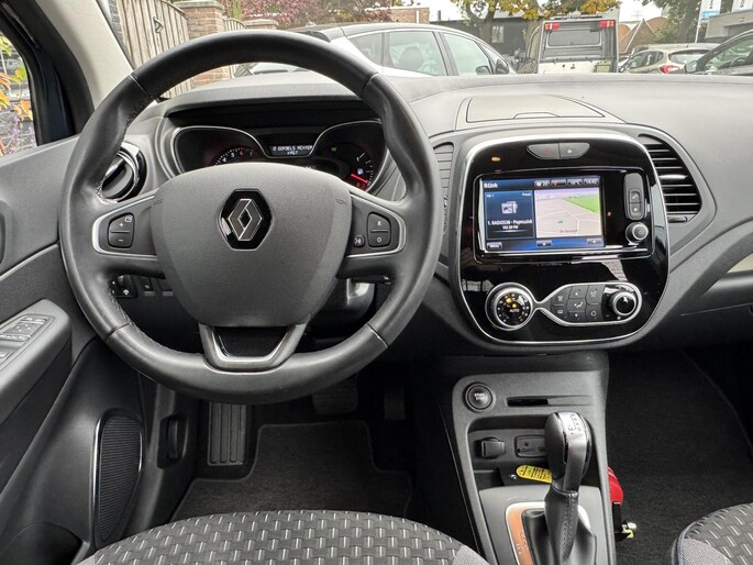 Een onopvallend paaltje of een overstekend kind achter de auto brengt risico's met zich mee. Gelukkig laat de achteruitrijcamera feilloos zien of alles veilig is. In deze Captur vind jij niet alleen schakelaars op het stuur om het full map navigatiesysteem te bedienen en het audio-installatiesysteem met DAB-ontvangst, maar er is ook spraakbediening. Jij verwacht natuurlijk electronic climate control in deze auto, en die is er dan ook. In deze Renault kun je je concentreren op het verkeer, terwijl de auto de omgeving voor je in de gaten houdt. Een automatisch inschakelbare verlichting zorgt dat de verlichting aangaat als het donkerder wordt - in tunnels bijvoorbeeld - en de regensensor schakelt de ruitenwissers in als het nodig is. Je hoeft er niets aan te doen. De cruise control betekent gemak, comfort en zuinig rijden. En deze auto heeft ook keyless entry, automatisch dimmende binnenspiegel, lederen stuur, boordcomputer en lederen versnellingspook als standaard uitrusting.