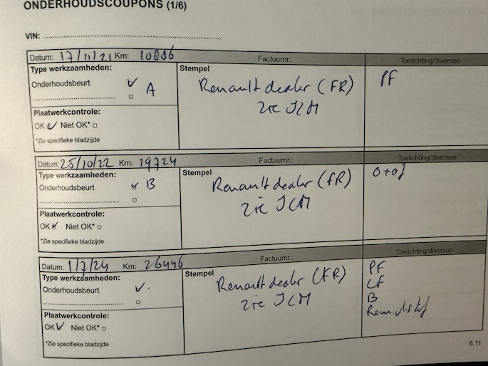 Zo kunnen wij aan de hand van het chassisnummer al veel controles doen. In het internationale Renault.Net intranet systeem (alleen inzichtelijk voor ons als dealers!) zien we de historie van de auto en dat vertelt ons al veel. Als de auto dan bij ons binnen komt, checken we nog veel meer! Is de staat zoals gezegd en te zien op de foto's? Zijn er verder bijzonderheden te zien? Voldoet hij echt aan de kwaliteit die wij willen leveren? Als we daarachter staan gaat de auto vervolgens onze werkplaats in, waar we ook onder de motorkap en aan de onderzijde checks doen.. ..