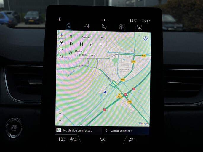 De achteruitrijcamera levert eersteklas parkeerservice. U weet precies hoeveel ruimte u nog heeft, in beeld en geluid. Spraaksturing is onderdeel van de uitrusting van deze auto. Met uw stem kunt u de belangrijkste voertuigfuncties bedienen. Het navigatiesysteem zorgt ervoor dat u altijd de juiste en snelste route vindt. Electronic climate control verwarmt of koelt het interieur met een druk op de knop. Gedoe met kabels en stekkers in de sigarettenaansteker is voorbij. De aanwezige draadloze oplaadmogelijkheid voor telefoons zorgt voor wireless recharging van uw smartphone. Deze Renault is voorzien van DAB ontvangst, regensensor, cruise control, keyless entry, automatisch dimmende binnenspiegel en boordcomputer.