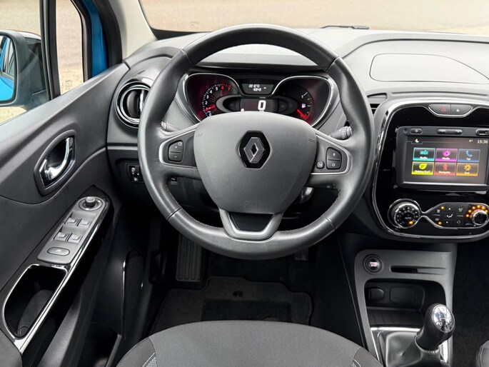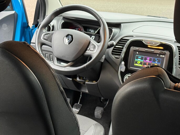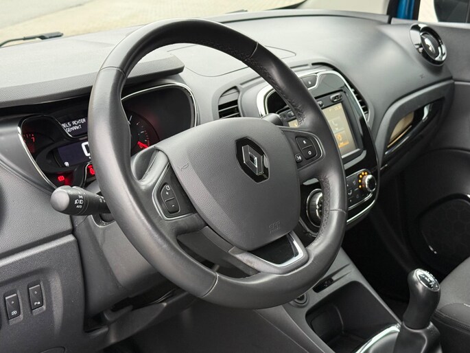 Met behulp van de parkeerhulp met achteruitrijcamera kunt u zo strak inparkeren als u maar wilt! Voor een veilige rit is het belangrijk dat uw handen het stuur vasthouden en uw ogen gefocust blijven op de weg; daarom kunt u het audio-installatiesysteem, met DAB-ontvangst en navigatiesysteem bedienen met het stuurwiel of via spraakbediening. Omdat u nu eenmaal niet overal ogen heeft, is deze Renault Captur voorzien van een achteropkomend verkeer waarschuwing die registreert wanneer de afstand tot uw achterligger te krap is. In een auto als deze kunt u niet zonder automatische airconditioning, zodat de temperatuur altijd goed is. De automatisch inschakelbare verlichting en regensensor zorgen dat onderweg automatisch de verlichting en de ruitenwissers worden ingeschakeld. Daarmee nemen ze u veel werk uit handen. Ook is de Renault uitgerust met: cruise control, keyless entry, lederen stuur, isofix-aansluiting, trip computer en lederen versnellingspook.