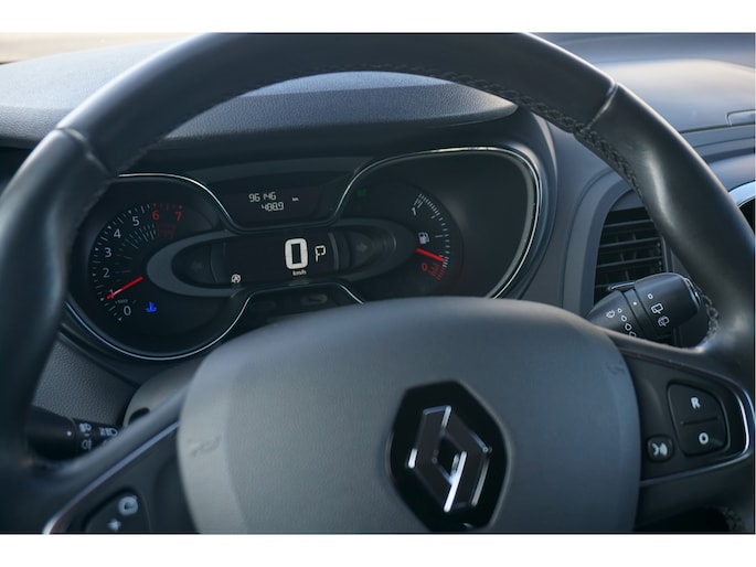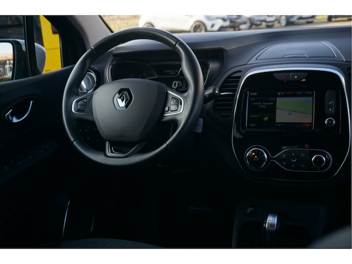 Nooit meer problemen bij achteruitrijden of inparkeren. De achteruitrijcamera houdt alles in de gaten! U bedient het full map navigatiesysteem en het audio-installatiesysteem via knoppen op het stuur. Zo kunt u steeds uw aandacht gericht houden op de weg. In een auto als deze kunt u niet zonder electronic climate control, zodat de temperatuur altijd goed is. De automatisch inschakelbare verlichting en regensensor zorgen dat onderweg automatisch de verlichting en de ruitenwissers worden ingeschakeld. Daarmee nemen ze u veel werk uit handen. Natuurlijk is deze Renault Captur voorzien van cruise control. De uitrusting van deze Renault is met keyless entry, lederen stuur, boordcomputer en lederen versnellingspook behoorlijk compleet.