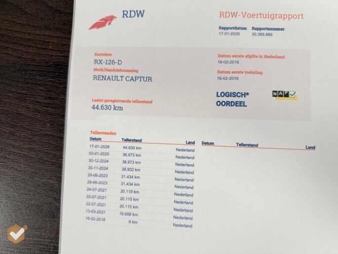 Kilometerstand gecontroleerd