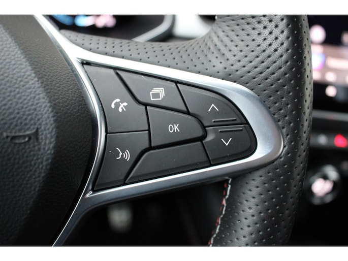 De achteruitrijcamera brengt precies in zicht wat zich achter u bevindt en toont een glashelder beeld op hoge resolutie. Een geluidssignaal waarschuwt hoeveel ruimte u nog heeft. Zoals u van zo'n jonge auto mag verwachten, zijn hier ook de geavanceerde remote services aanwezig. Simpelweg met een app op uw smartphone controleert u op afstand de status van de auto en bedient u diverse functies. U kunt uw handen aan het stuur houden en uw ogen op de weg. Want het audiosysteem, met DAB-ontvangst, en het full map navigatiesysteem bedient u vanaf het stuurwiel. Het comfort wordt verhoogd door de aanwezige electronic climate control. Het hoort bij een intelligente auto als deze dat hij zelf in staat is om zijn omgeving in de gaten te houden. Dat doet deze Renault met een automatisch inschakelbare verlichting en een regensensor. Ook is de Renault uitgerust met: cruise control, keyless entry, automatisch dimmende binnenspiegel, lederen stuur, boordcomputer en lederen versnellingspook.