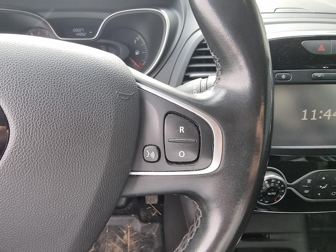 Hoeveel ruimte heeft u nog bij het inparkeren? De achteruitrijcamera brengt helder in beeld wat zich achter de auto bevindt en geeft een geluidssignaal. Spraaksturing maakt het eenvoudiger en veiliger om deze auto onderweg te bedienen. Het full map navigatiesysteem zorgt ervoor dat u snel en ontspannen op uw bestemming aankomt. Het comfort wordt verhoogd door de aanwezige electronic climate control. Met de DAB-ontvanger luistert u naar glasheldere digitale radio. Ook is de Renault uitgerust met: regensensor, cruise control, keyless entry, lederen stuur, boordcomputer en lederen versnellingspook.