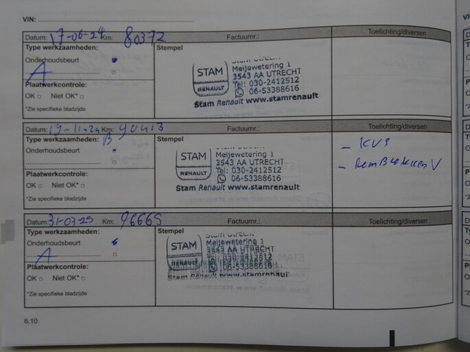 Laatste service is bij 96Dkm uitgevoerd.