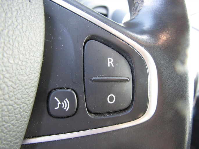 - Met leder bekleed 3-spaaks stuurwiel met bediening cruise control en snelheidsbegrenzer in kleur Noir