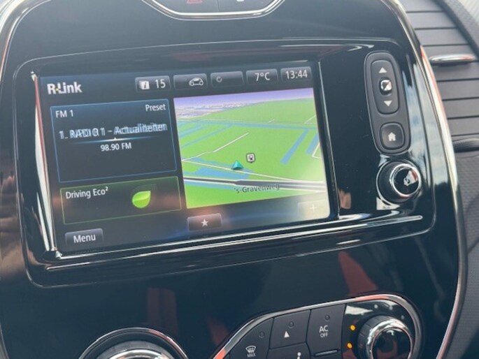 U weet altijd waar u moet zijn, dankzij het navigatiesysteem. Tot de standaard uitrusting van deze auto hoort ook electronic climate control. Deze RENAULT Captur maakt het rijden graag gemakkelijk. Daarom verzorgt de regensensor de mate van ruitreiniging die de ruitenwissers moeten leveren bij neerslag. Relaxt rijden is meegeleverd in de vorm van cruise control. Met de sleutel op zak instappen en wegrijden. Keyless entry maakt het mogelijk. Ook buitentemperatuurmeter, 3-spaaks lederen stuur, isofix-aansluiting, usb-aansluiting, Instrumentenpaneel bestaande uit o.a. snelheidsmeter, kilometerteller, dagteller, toerenteller, klokje en brandstofmeter en bagage afdekhoes zijn aan boord.