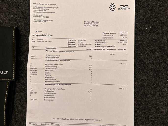 Onderhoudsboekjes: Aanwezig