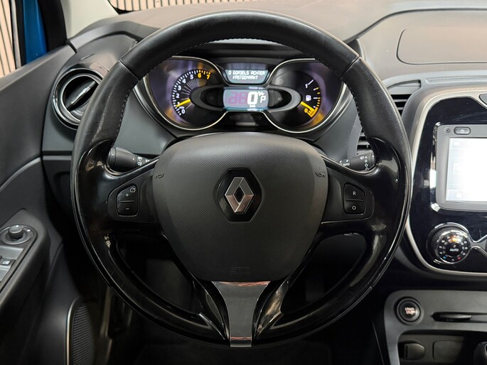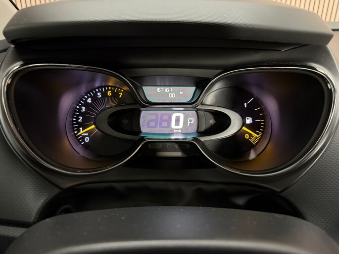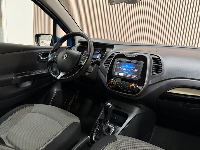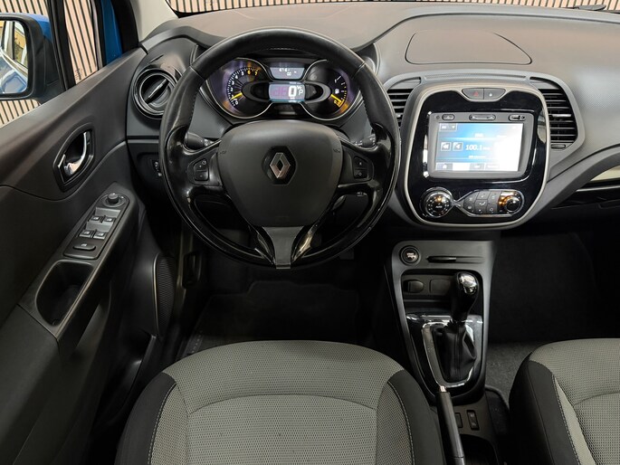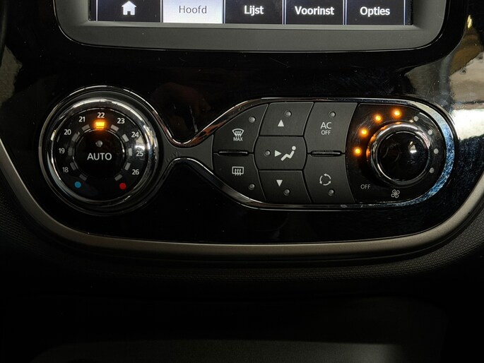 De automatische airconditioning zorgt voor een prettige binnentemperatuur. Natuurlijk is een complete auto als deze ook voorzien van sensoren die de omgeving in de gaten houden. Deze Renault heeft niet alleen een automatisch inschakelbare verlichting aan boord, maar ook een regensensor. Met cruise control rijdt u rustiger en meer ontspannen, en bovendien zuiniger. Een prettige optie is de keyless entry, die ervoor zorgt dat de Renault Captur automatisch van het slot gaat als u dichtbij komt. Natuurlijk behoren navigatiesysteem en lederen stuur ook tot de uitrusting van deze complete auto.