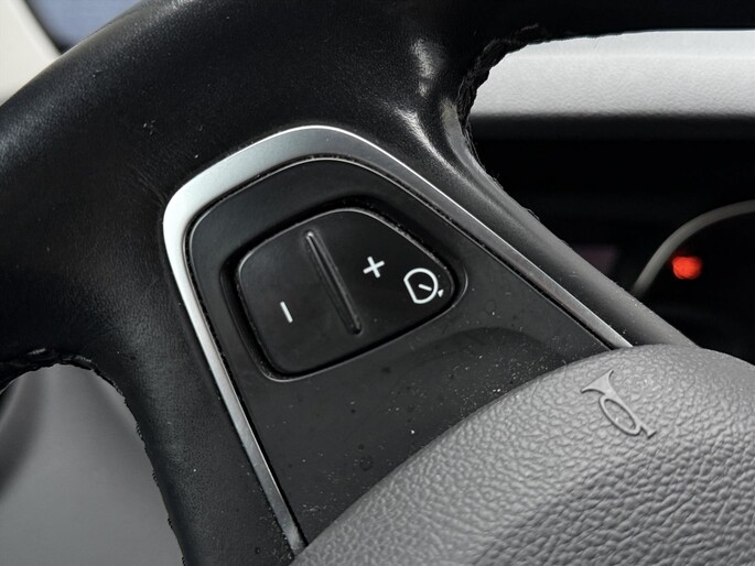 - Met leder bekleed 3-spaaks stuurwiel met bediening cruise control en snelheidsbegrenzer in kleur Noir