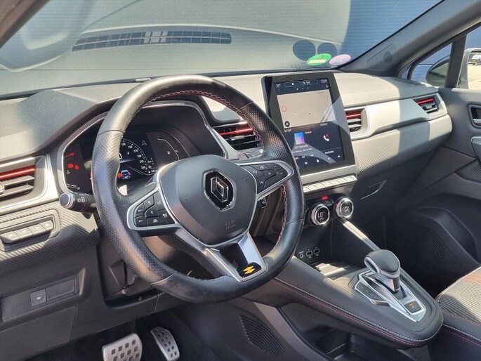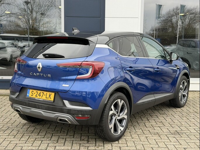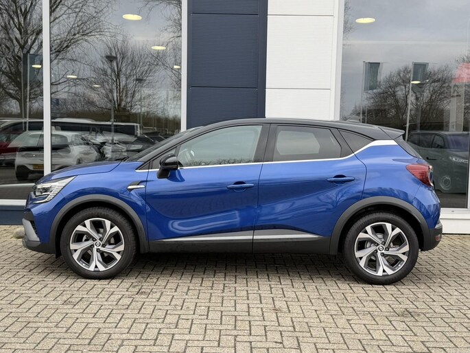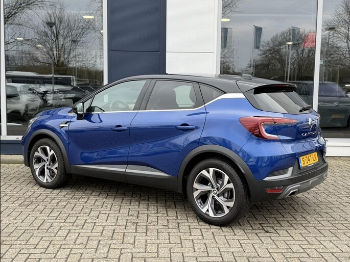 Deze 100% dealeronderhouden blauw metallic (met zwarte accenten) sportieve en luxe Renault Captur AUTOMAAT Hybride met de zuinige en krachtige 1.3 TCe motor met 140pk in de sportieve R.S. uitvoering is o.a. voorzien van een volautomatische airconditioning, FULL MAP NAVIGATIE, bluetooth connectiviteit, Apple Carplay/Android Auto, DAB+ radio, 18" LM-velgen, adaptieve cruise control en speedlimiter, achteruitrij-camera, parkeersensoren voor en achter, DODE HOEK detectie, verkeersbord detectie, rijstrooksensor, WINTERPAKKET (verwarmbare voorstoelen, verwarmbare stuurwiel en een verwarmbare voorruit), beide voorstoelen in hoogte verstelbaar, bekleding leer/stof, lederen stuurwiel in hoogte en diepte verstelbaar, middenarmsteun, deelbare en verschuifbare achterbank met ISOFIX bevestigingspunten, FlexFloor (dubbele laadvloer), regen- en lichtsensor, automatisch dimmende binnenspiegel, grootlicht-assistentie, LED dagrijverlichting, LED koplampen, LED achterlichten, elektrische ramen voor en achter, buitenspiegels elektrisch verstelbaar/verwarmbaar/inklapbaar, key less entry en key less start, chroom delen exterieur, achterklepspoiler, privacy glass, knipperlichten in de buitenspiegels, dubbele uitlaat, boordcomputer en een bandenspanningscontrole systeem.