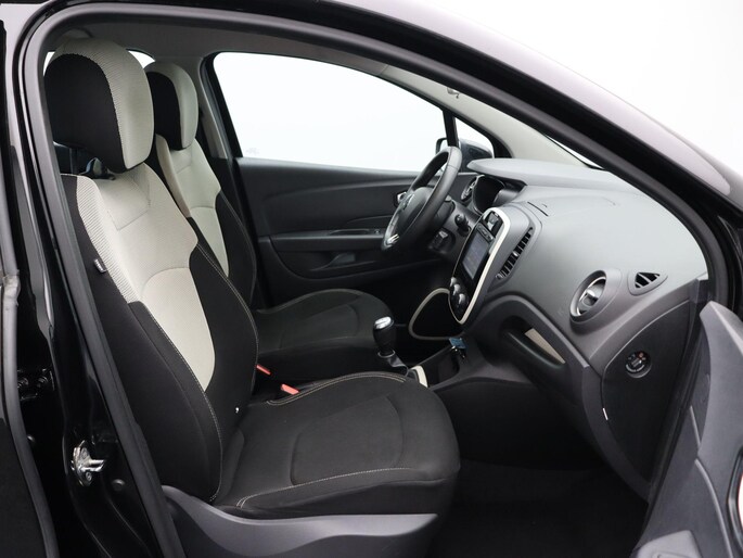 Een prachtige auto met een hoge instap, dat is de Renault Captur! De stoere kunststofranden, het grote merkembleem en de donkere koplampunits geven hem Franse flair. De glimmende, zwarte kunststofdelen in combinatie met de matzwarte bescherming aan de onderkant van de koets doet erg chique aan. De hoogwaardige ‘look’ blijft ook in het interieur overeind. Voorin zit je goed op de lekkere comfortabele stoelen en ook achterin kunnen twee volwassenen erg goed zitten. De kofferruimte lijkt in eerste instantie niet heel ruim, maar schijn bedriegt! Na het verwijderen van de dubbele bodem ontstaat er toch wel een forse bak. Daarnaast kun je de kofferbakruimte vergroten door de achterbank 16 centimeter naar voren te schuiven.