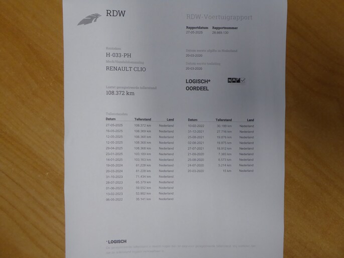 Kilometerstand gecontroleerd