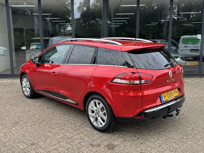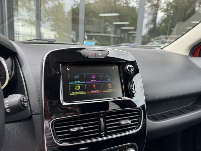 In deze Clio Estate vindt u schakelaars op het stuur om het full map navigatiesysteem te bedienen en het audiosysteem met DAB-ontvangst. De sensoren van de achteropkomend verkeer waarschuwing registreren wat er gebeurt in de dode hoeken en achter u. U krijgt meteen een waarschuwing als u een achterligger over het hoofd ziet. Dankzij automatische airconditioning is het interieur behaaglijk warm of verfrissend koel. Met de aanwezige parkeersensoren weet u altijd zeker of het past. Van een paar vegen bij motregen tot maximale stand bij noodweer: de regensensor reageert zelfstandig en direct. Natuurlijk behoren cruise control, keyless entry, lederen stuur, bagage afdekhoes, boordcomputer en lederen versnellingspook ook tot de uitrusting van deze complete auto.