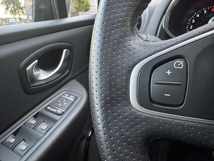 Parkeer en kijk niet om! De achteruitrijcamera doet dat voor u. Het navigatiesysteem is uw vertrouwde gids, waarheen de reis ook gaat. Op een drukke weg heeft u soms ogen in uw achterhoofd nodig. De sensoren aan de achterzijde nemen die functie over en geven een achteropkomend verkeer waarschuwing als een achterligger te dicht op u zit. De automatische airconditioning zorgt voor een behaaglijk klimaat in de auto. Laat u niet afleiden door gerommel aan de audioknoppen. De audiobediening op het stuur zorgt dat u altijd geconcentreerd blijft. De uitrusting van deze Renault is met DAB ontvangst, regensensor, cruise control, keyless entry, buitentemperatuurmeter en lederen stuur behoorlijk compleet.