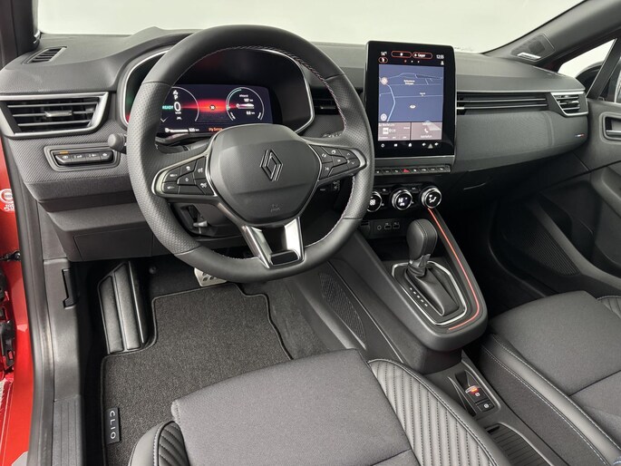 Het gebruik van de 360 graden camera op deze auto helpt u bij het navigeren door lastige rijbanen en het drukke stadsverkeer. Adaptive cruise control is een comfortabele en veilige optie. Het systeem reguleert de snelheid en houdt automatisch afstand tot uw voorligger. Deze Renault Clio is 'connected'. Belangrijke functies worden permanent gemeten en zijn uit te lezen via een speciale app, ook op afstand. Het navigatiesysteem is uw vertrouwde gids, waarheen de reis ook gaat. De electronic climate control zorgt voor een behaaglijk klimaat in de auto. En deze auto heeft ook draadloos opladen, DAB ontvangst, regensensor, keyless entry, automatisch dimmende binnenspiegel en boordcomputer als standaard uitrusting.