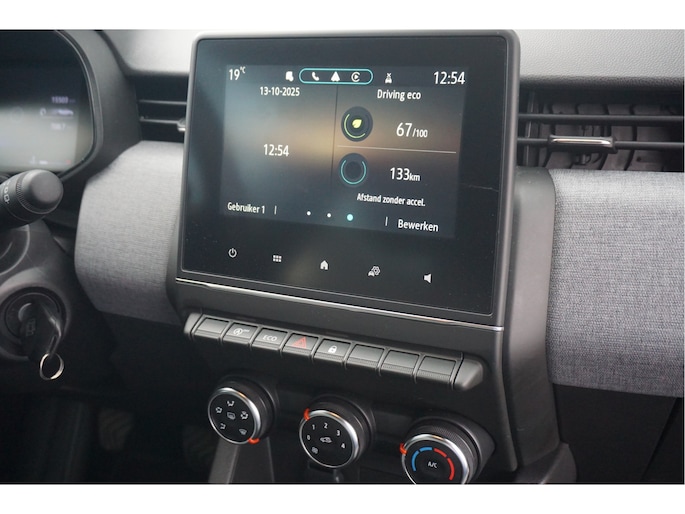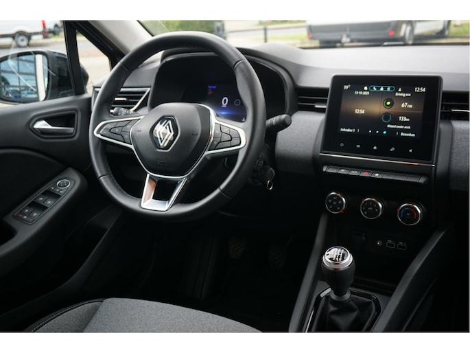 Over het digitale dashboard is goed nagedacht. Alle belangrijke functies binnen en buiten in één oogopslag. Functies activeren en storingen opsporen? Bij deze auto gaat het eenvoudig via uw smartphone. Overal en altijd. Kies de muziek waarvan u houdt, dankzij de dab-radio klinkt het altijd geweldig. Intussen bedient u het audiosysteem met de knoppen op het stuur. Inparkeren en uitparkeren kost geen enkele moeite dankzij de parkeersensoren. Het hoort bij een intelligente auto als deze dat hij zelf in staat is om zijn omgeving in de gaten te houden. Dat doet deze Renault met een automatisch inschakelbare verlichting en een regensensor. De Renault is standaard voorzien van: cruise control, airconditioning, centrale deurvergrendeling met afstandsbediening, boordcomputer en verstelbaar stuur.