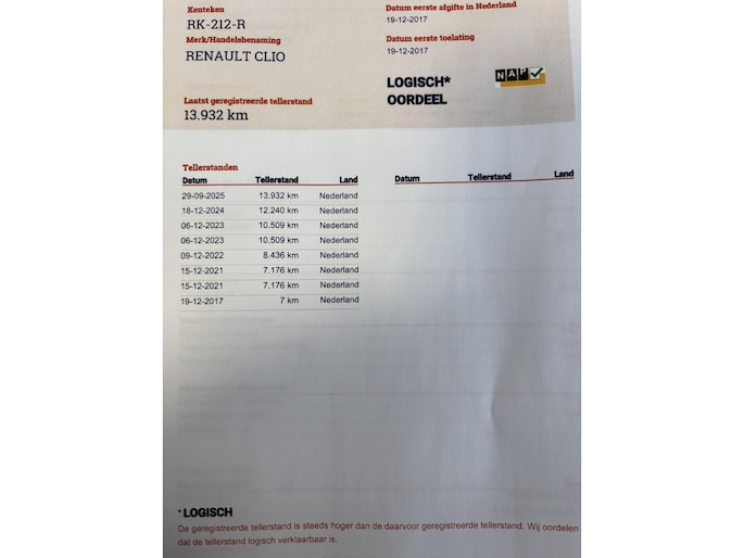 Kilometerstand gecontroleerd