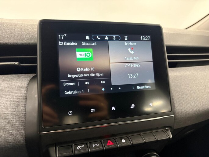 Het slim uitgedachte digitale dashboard toont alle essentiële ritinformatie in één oogopslag. Via uw smartphone en Connected Services checkt u eenvoudig de belangrijke functies van de auto, overal en altijd. Het audiosysteem met DAB-ontvangst en het navigatiesysteem bedient u veilig met knoppen op het stuur. Boem is ho? Niet bij deze Renault Clio. De piepjes van de parkeersensoren waarschuwen u op tijd voor obstakels. Om de veiligheid onderweg te verhogen, heeft deze Renault zowel een automatisch inschakelbare verlichting als een regensensor aan boord, zodat hij zelf de verlichting en de ruitenwissers kan inschakelen. U bent in deze Renault ook voorzien van cruise control, airconditioning, centrale deurvergrendeling met afstandsbediening, boordcomputer en verstelbaar stuur.