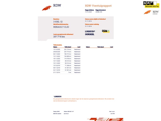 Kilometerstand gecontroleerd