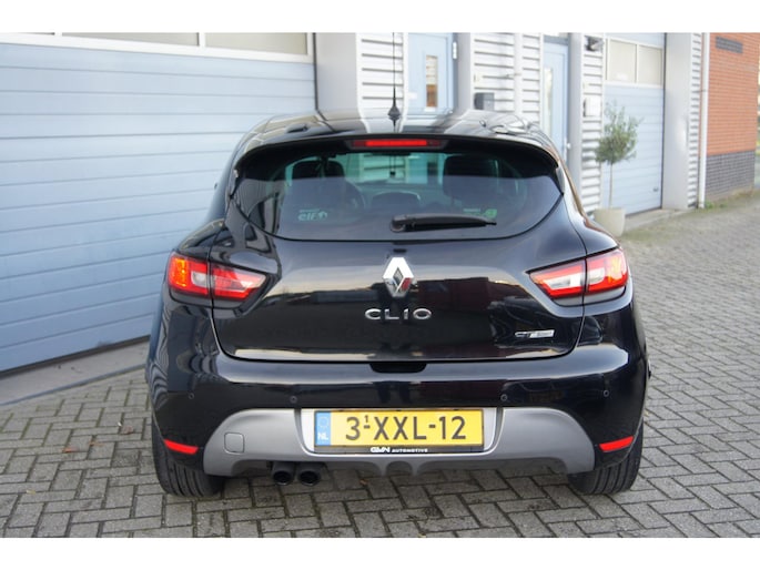 Zeer sportieve en complete Renault Clio TCe 120 EDC GT, uitgevoerd in Noir Etoilé metallic en voorzien van de krachtige 120pk turbomotor met EDC 6-traps automaat.