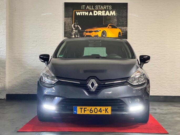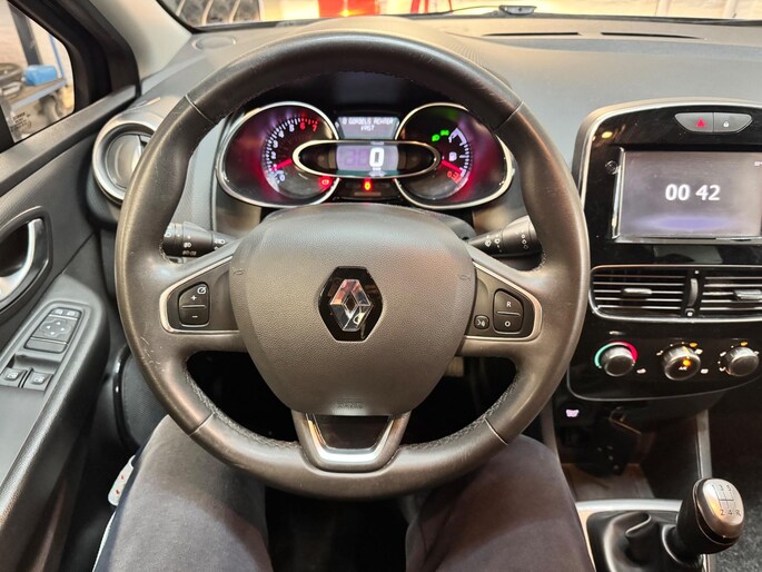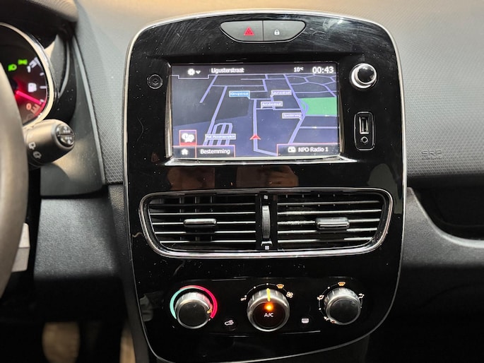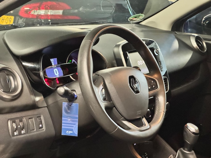 Een goede veiligheidsvoorziening is de stuurbediening voor belangrijke functies. De auto is natuurlijk voorzien van een navigatiesysteem en het audiosysteem biedt glasheldere geluidskwaliteit dankzij DAB-ontvangst. Deze Renault Clio is voorzien van sensoren aan de achterzijde om een achteropkomend verkeer waarschuwing te geven als de afstand tussen u en een achterligger te klein is. Hoeveel ruimte u nog heeft bij het insteken? De parkeersensoren laten het weten! Da's gemakkelijk! Ook op de korte stukken is de cruise control een uitkomst. Kijk maar bij de benzinepomp! Geen sleutel of afstandsbediening meer nodig om deze Renault Clio te ontgrendelen. De sloten gaan vanzelf open als u dichtbij komt, via de sensor van de keyless entry. Ook is de Renault uitgerust met: airconditioning, buitentemperatuurmeter, lederen stuur, centrale deurvergrendeling met afstandsbediening, boordcomputer en lederen versnellingspook.