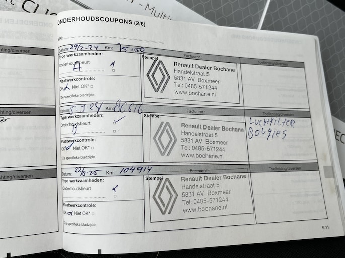 Onderhoudsboekjes: Aanwezig
