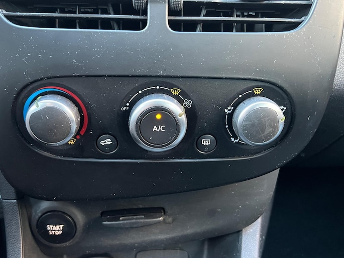Airco werkt. Je kan de standen van de ventilatie waar deze blaast niet veranderen. De bediening is kapot. Staat op het voorraam.