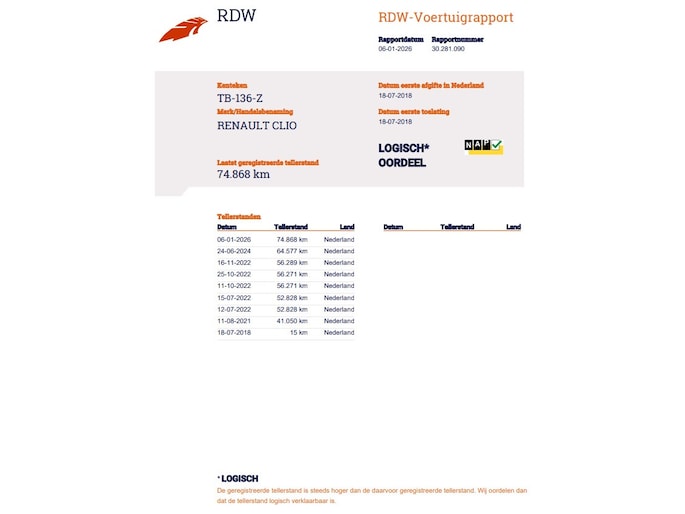 Kilometerstand gecontroleerd
