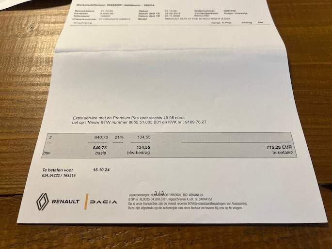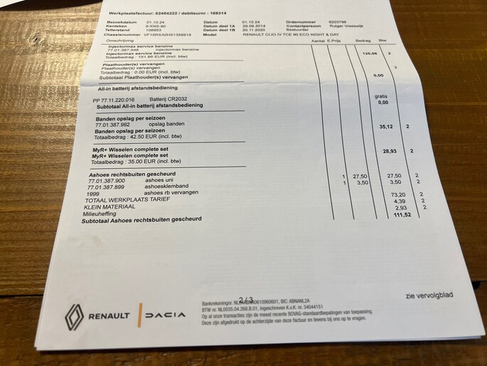 Wij hebben de auto al helemaal nagekeken en klaargemaakt voor de verkoop. Wij hebben o.a. een Onderhoudsbeurt uitgevoerd en 2 nieuwe Vredestein all season banden gemonteerd. Er is een nieuwe pook hoes besteld. De huidige die erin zit is niet zo mooi meer.
