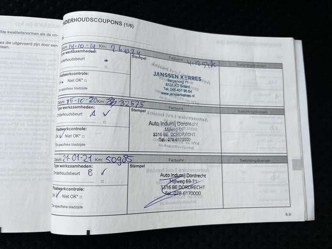 Onderhoudsboekjes: Aanwezig
