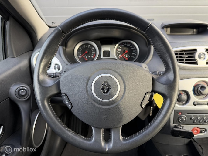 Wisselen van radiofrequentie of veranderen van zender: de audiobediening op het stuur brengt alles onder handbereik. Cruise control houdt automatisch de ingestelde snelheid vast. Het is een ideaal hulpmiddel om lange ritten comfortabeler te maken. En natuurlijk is er ook gedacht aan airconditioning. U bent in deze Renault ook voorzien van lederen stuur, centrale deurvergrendeling met afstandsbediening, boordcomputer en lederen versnellingspook.