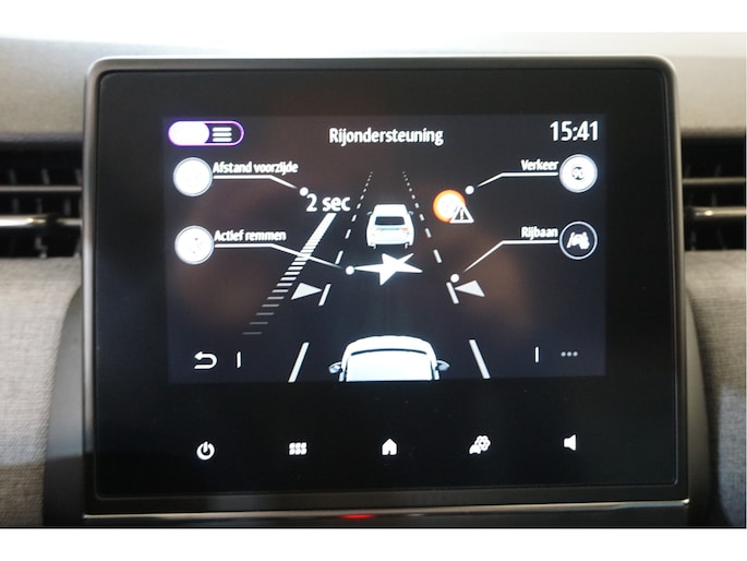 Nooit meer de weg kwijt: daarvoor zorgt het onboard navigatiesysteem. Alle audioknoppen letterlijk onder handbereik: dat kan met de audiobediening op het stuur. Met de DAB-ontvanger luistert u naar glasheldere digitale radio. Ervaar het comfort van inparkeren met parkeersensoren. Deze auto laat zich moeiteloos in elk parkeervak manoeuvreren. Achter het stuur van deze Renault bent u niet alleen. De auto kijkt als het ware met u mee tijdens de rit. De regensensor schakelt de ruitenwissers in als het nodig is en de automatisch inschakelbare verlichting doet de lichten voor u aan. U bent in deze Renault ook voorzien van cruise control, airconditioning, lederen stuur, isofix-aansluiting, centrale deurvergrendeling met afstandsbediening en boordcomputer.