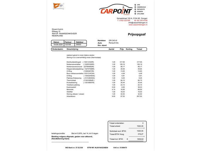 Kilometerstand gecontroleerd