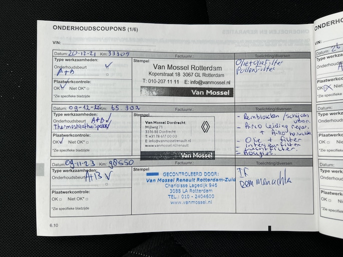 Onderhoudsboekjes: Aanwezig
