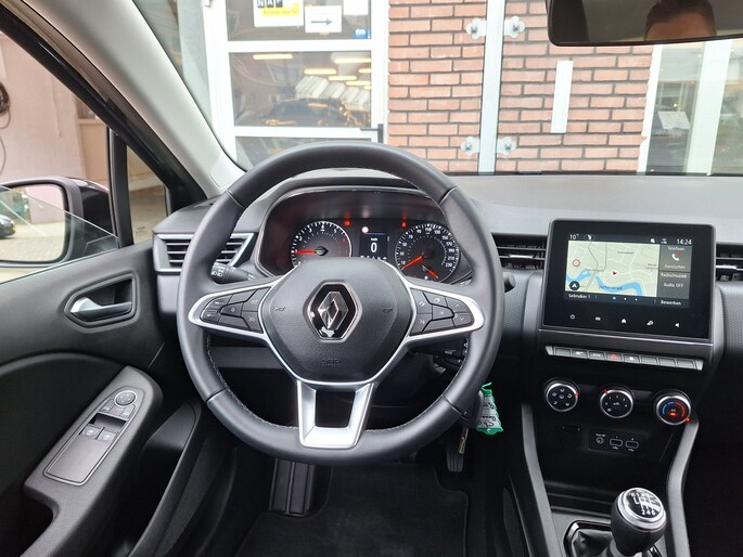 De speciale app verbindt met Connected Services, die de status van vitale functies bijhoudt en waarschuwt als u bijvoorbeeld moet tanken, de bandenspanning moet controleren of olie moet bijvullen. U kunt het audio-installatiesysteem met DAB-ontvangst en het full map navigatiesysteem bedienen met de knoppen op het stuur. Liever gepiep dan gekraak? Dan zult u blij zijn met de aanwezige parkeersensoren! Om de veiligheid onderweg te verhogen, heeft deze Renault zowel een automatisch inschakelbare verlichting als een regensensor aan boord, zodat hij zelf de verlichting en de ruitenwissers kan inschakelen. Cruise control is aanwezig; prettig voor de lange einden. De uitrusting van deze auto is met airconditioning, lederen stuur, centrale deurvergrendeling met afstandsbediening en boordcomputer behoorlijk compleet.