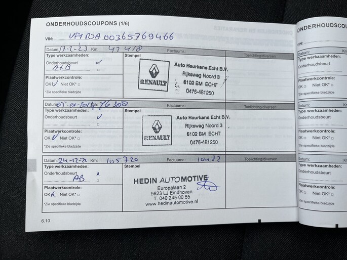 Onderhoudsboekjes: Aanwezig