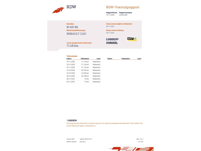 Kilometerstand gecontroleerd