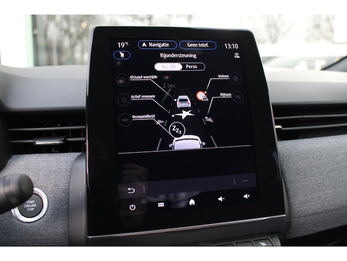 Kom maar, kom maar, kom maar... ho! Prettig hoor, zo'n achteruitrijcamera. Handig en veilig: Connected Services. Alle vitale functies en data van de auto checkt u via de app op uw smartphone. Een optie die de veiligheid verhoogt, is de bediening vanaf het stuur van het audiosysteem (met DAB-radio!) en het navigatiesysteem. Geen onnodige spaghetti van oplaadsnoertjes voor de smartphone: deze Renault Clio heeft een draadloze oplaadmogelijkheid voor telefoons. Het spreekt voor zich dat een auto als deze ook van electronic climate control is voorzien. Met regensensor, cruise control, keyless entry, automatisch dimmende binnenspiegel en boordcomputer is deze auto helemaal compleet.